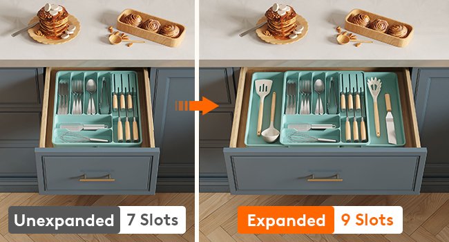 The Lifewit utensil organizer can be expanded from 7 compartments to 9 compartments, allowing for storage of more utensils, cookware, and kitchen tools.